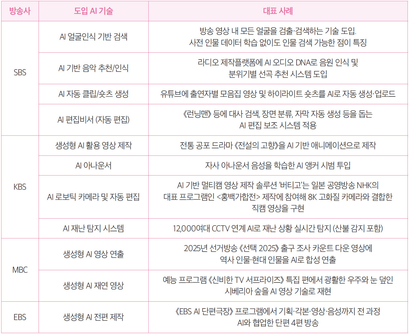 지상파 방송사의 AI 도입 현황AI와 함께 열어갈 K-콘텐츠의 무한한 가능성