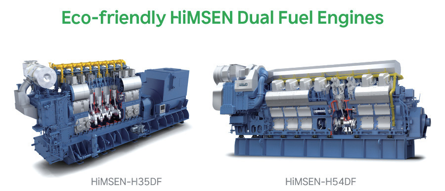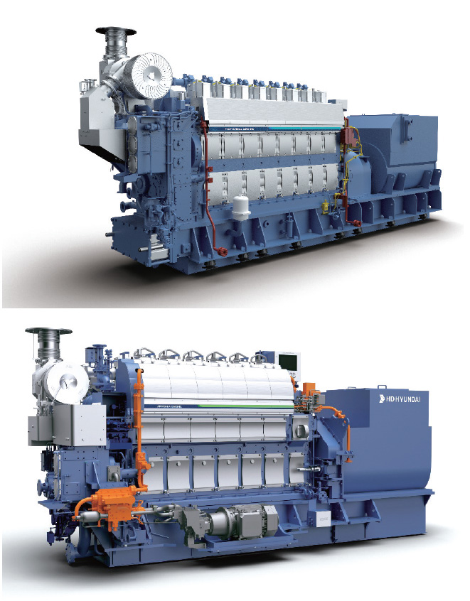 HD현대중공업 세계최초 고압 직분식 메탄올 HiMSEN 엔진(위: 모델명 H32DF-LM, 아래: 모델명: H22CDF-LA)