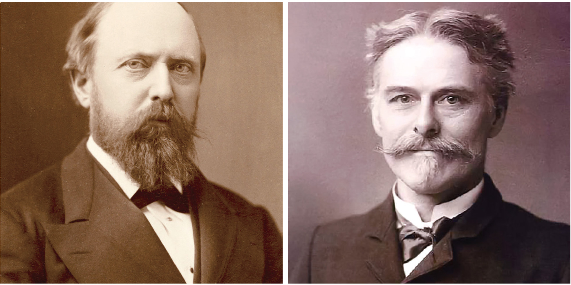 미국 최초의 고생물학 교수인 오스니엘 마시(좌), 미국에서 최초로 공룡 화석을 발견한 에드워드 코프(우)