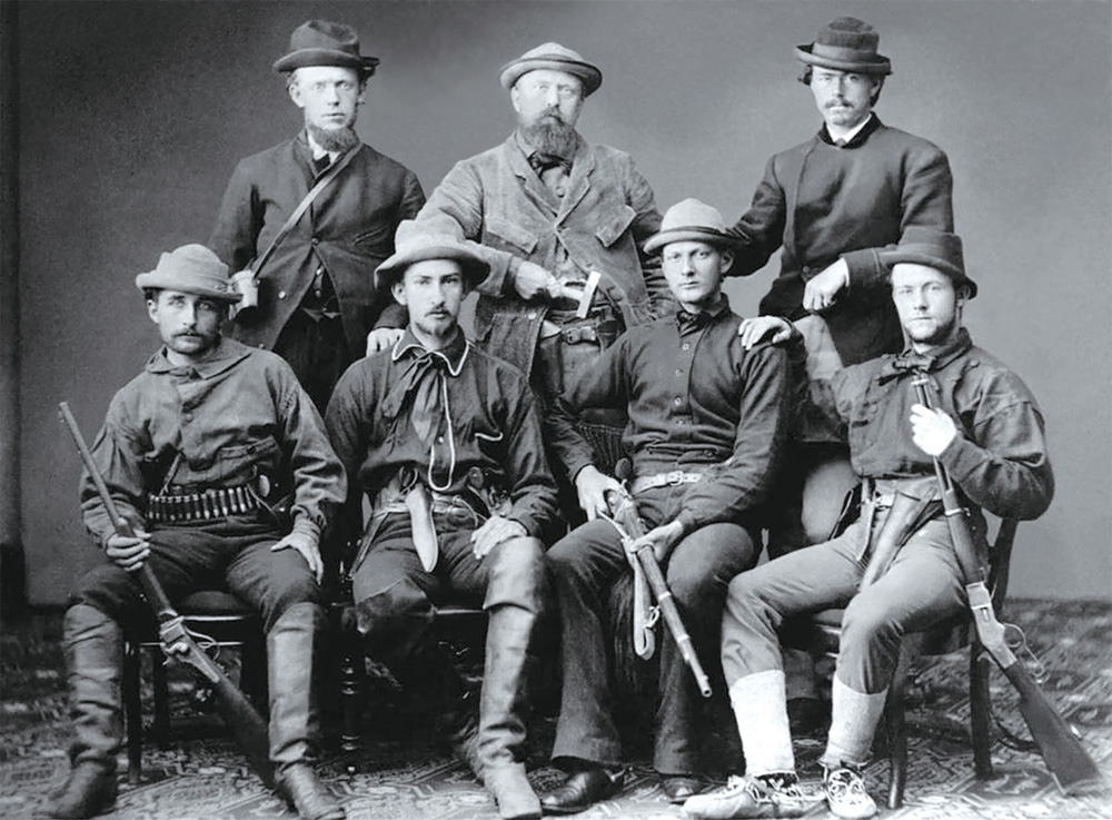 오스니얼 찰스 마시(뒷줄 중앙)와 탐사대의 1872년 기념 사진. 당시 화석 발굴단은 연구단보다는 단단히 무장한 탐사대에 가까웠다.
